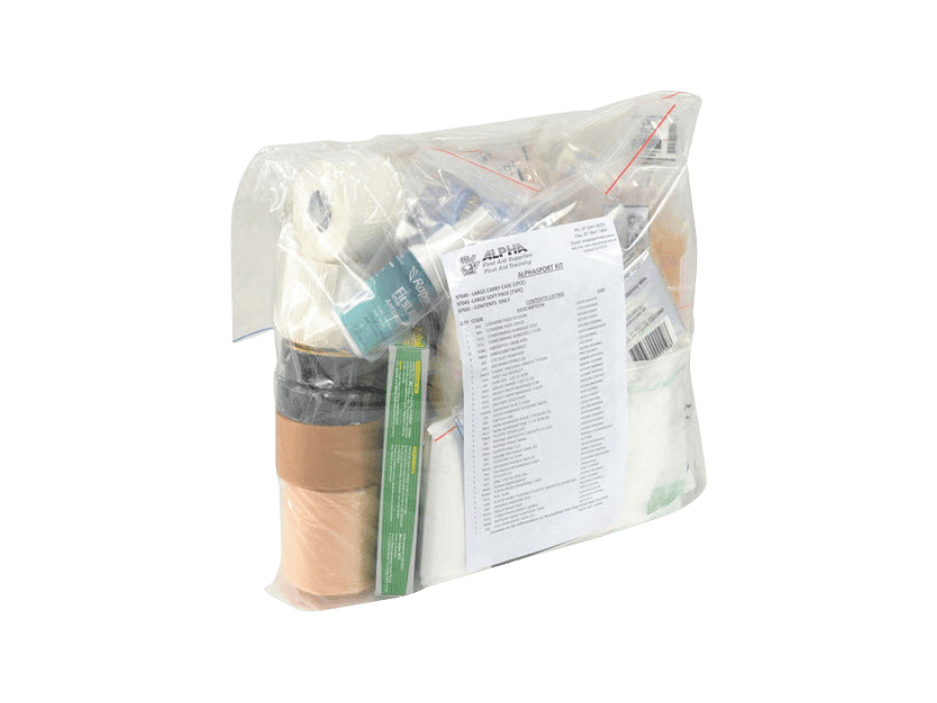 The StrapAid Sport Kit is an ideal sideline first aid kit for senior teams, covering the essentials for common game-day injuries including cuts and grazes, bleeding, sprains and strains, eye irritation, and general wound care. Suitable for rugby league, rugby union, AFL, soccer, and other field sports.